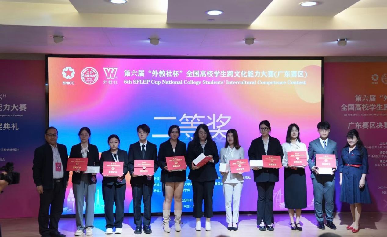 “外教社杯”全国高校学生跨文化能力大赛已于今年3月纳入“中国高等教育学会《竞赛分析报告》”,是全国最权威的大学生外语类能力竞赛之一。本次广东赛区决赛由广东省本科高校外语类专业教学指导委员会和上海外语教育出版社主办,广东省本科高校大学英语课程教学指导委员会协办。共有来自包括中山大学、深圳大学和汕头大学等在内的全省53所高校的162位选手参加。比赛内容分为案例展析、情景评述、讲述中国故事等环节;重点考察选手在多元文化语境下,分析和解决跨文化交际问题、讲好中国故事、坚定文化自信、增进国际理解的能力。