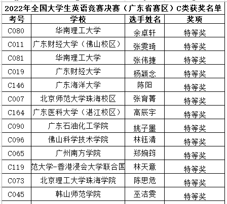2022年10月23日,第24届全国大学生英语竞赛(NECCS)广东赛区决赛顺利举行。广州南方学院的7名同学与来自华南理工大学、北京师范大学珠海分校和广东财经大学等高校的近200位选手共同竞技,最终取得特等奖1名、一等奖6名的优异成绩。