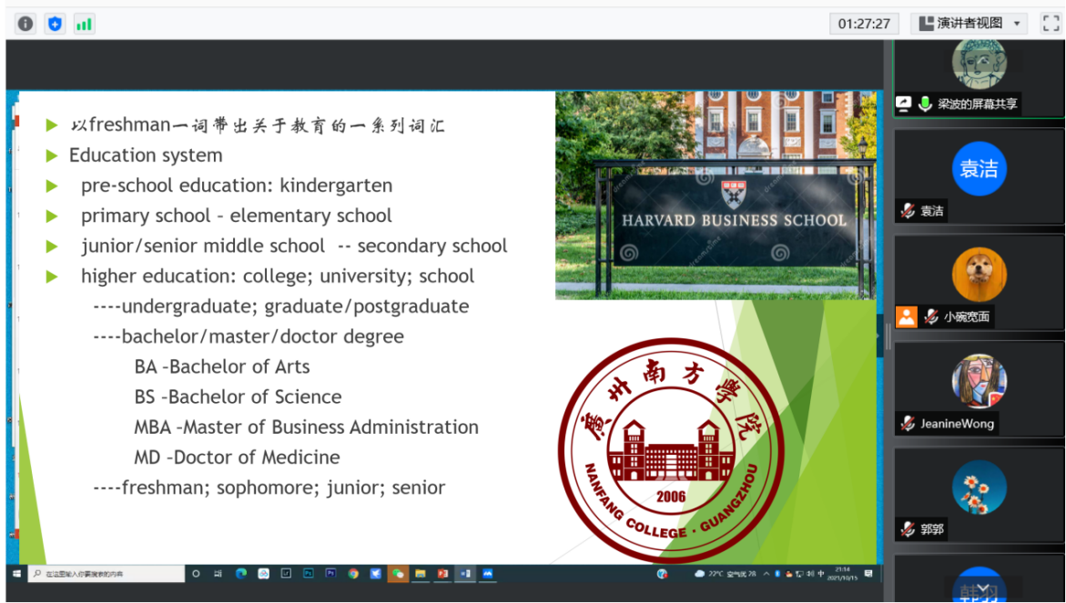 为切实提高教学质量,打造一支高素质的教师队伍,10月15日晚8点,122cc太阳集成游戏(以下简称大英中心)在腾讯会议平台召开大学英语教学经验分享会,会议由大英中心主任陈剑波主持,部门全体教职员参加会议。大英中心兼职教师梁波受邀担任此次会议的分享嘉宾。梁老师在我校任教多年,历次评教均名列前茅,深受学生喜爱。