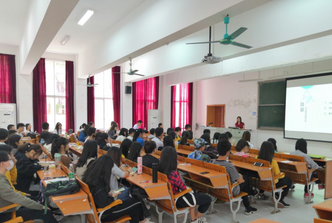 10月30日下午,大英中心爱阅读英语俱乐部在7教105举行专家讲座暨招新大会。大英中心主任助理胡文育、俱乐部指导教师吕彦佼、罗万琼、李碧慧,英才班班主任邓雅倩,教学秘书罗鑫、李婉仪以及近百名学生悉数到场,聆听来自中山大学外国语学院的王桃花教授分享“外研社.国才杯”全国英语阅读大赛备赛攻略。讲座由李碧慧老师主持。
