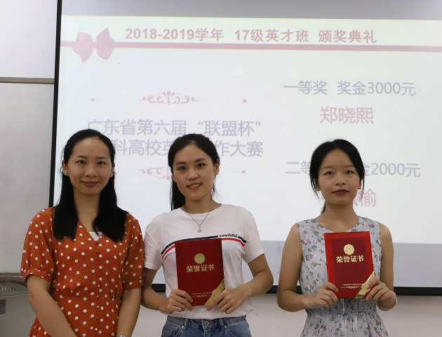 6月27日,122cc太阳集成游戏为17、18级英才班举行了“广东省第六届‘联盟杯’本科高校英语写作大赛”及“2019年全国大学生英语竞赛”两项省级英语赛事的颁奖典礼,为获奖学子颁发了奖状和奖金。大英中心为鼓励英才班学生在各项大赛中创造佳绩,根据大赛难度及获奖率等因素设置了奖金发放标准。此次颁奖典礼为七人获得的九个奖项颁发了奖金,包括“写作大赛”(大英组)一等奖获得者郑晓熙3000元,二等奖获得者钟敏榆、黄一心、蒋晓琳每人2000元,三等奖获得者戴穗丹、曹欣瑜每人500元;“大学生英语竞赛”(C类)特等奖获得者黄一心3000元,一等奖获奖者刘玥莹、郑晓熙每人500元。