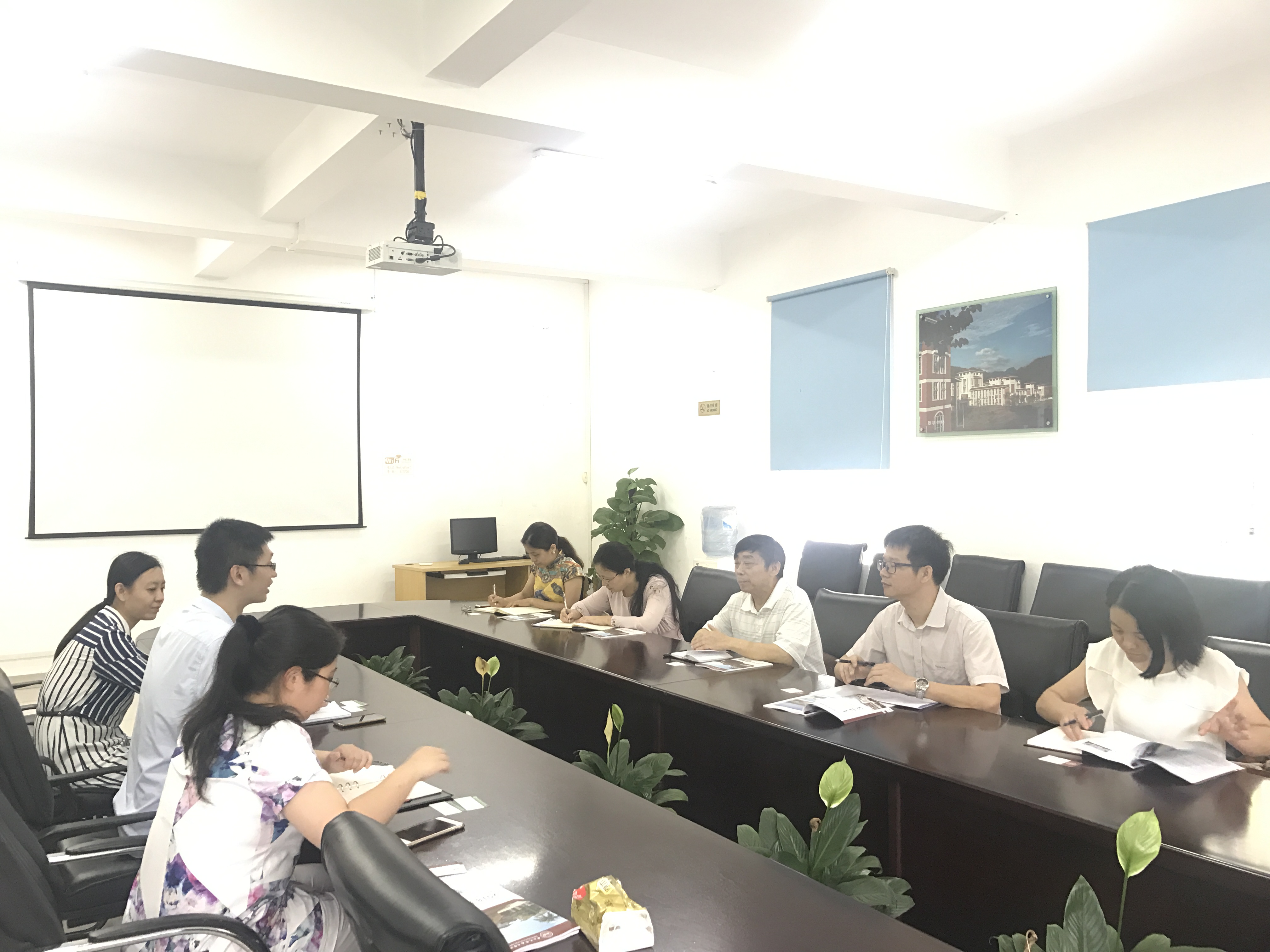 本次交流会以国际合作项目开展、大学英语教学为主题。首先,我校负责国际交流事务的老师介绍了我校国际合作发展的历史沿革、现有的国际交流项目、以及项目的具体实施等情况。期间,对方教师对我校部分项目的具体开展,如2+2中美联合培养项目的课程规划、学分设置等问题做了详细了解。随后,对方教师代表也深入介绍了广东技术师范大学天河学院国际合作项目的开展情况,其中有不少经验可供我们学习借鉴。最后,双方就大学英语教学这一主题,在教学管理、课程设置、班级划分、教学团队建设等方面进行了深入探讨。