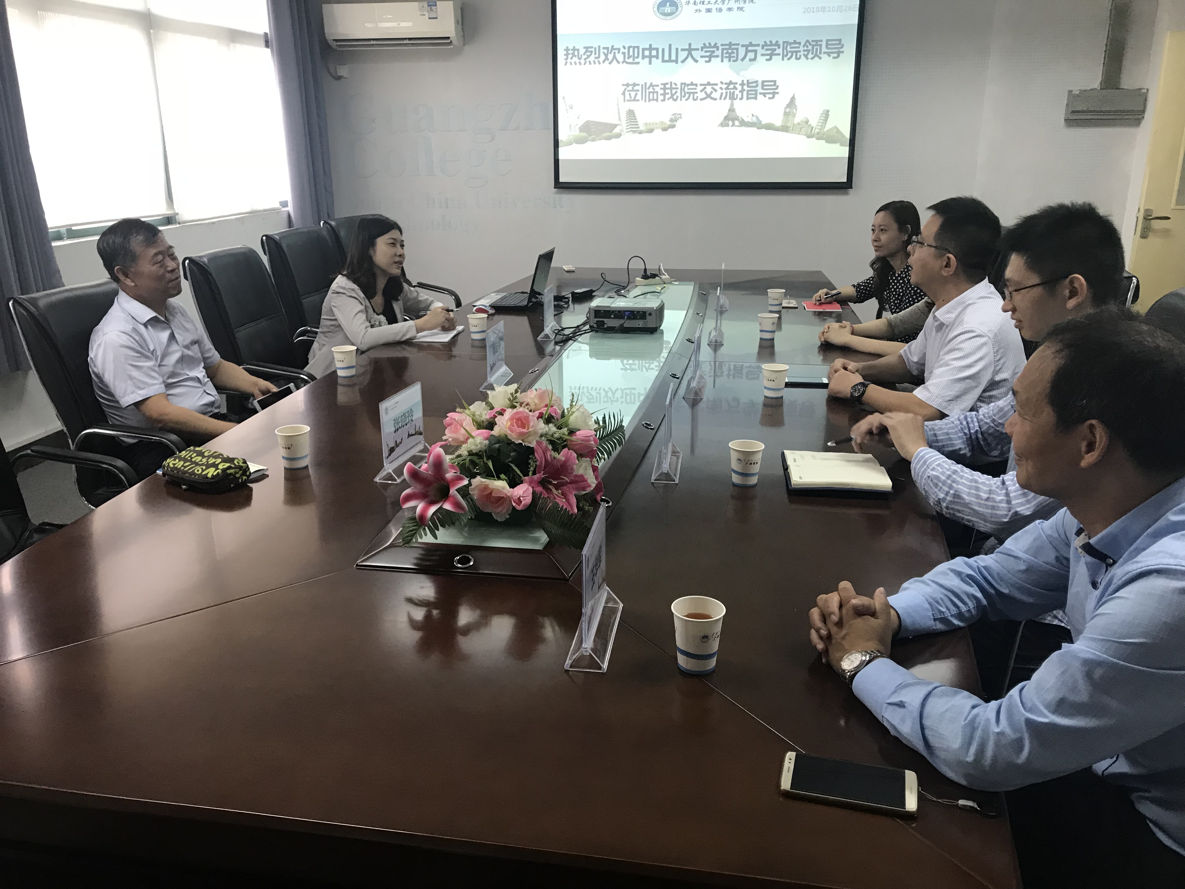 10月26日上午,为提高应用型人才培养水平,提高教学质量,我校122cc太阳集成游戏主任陈剑波、主任助理胡文育、教研室主任黄光艳、教师代表王华军、办公室主任李玥一行5人前往华南理工大学广州学院外国语学院考察调研。受到该院领导的热烈欢迎。