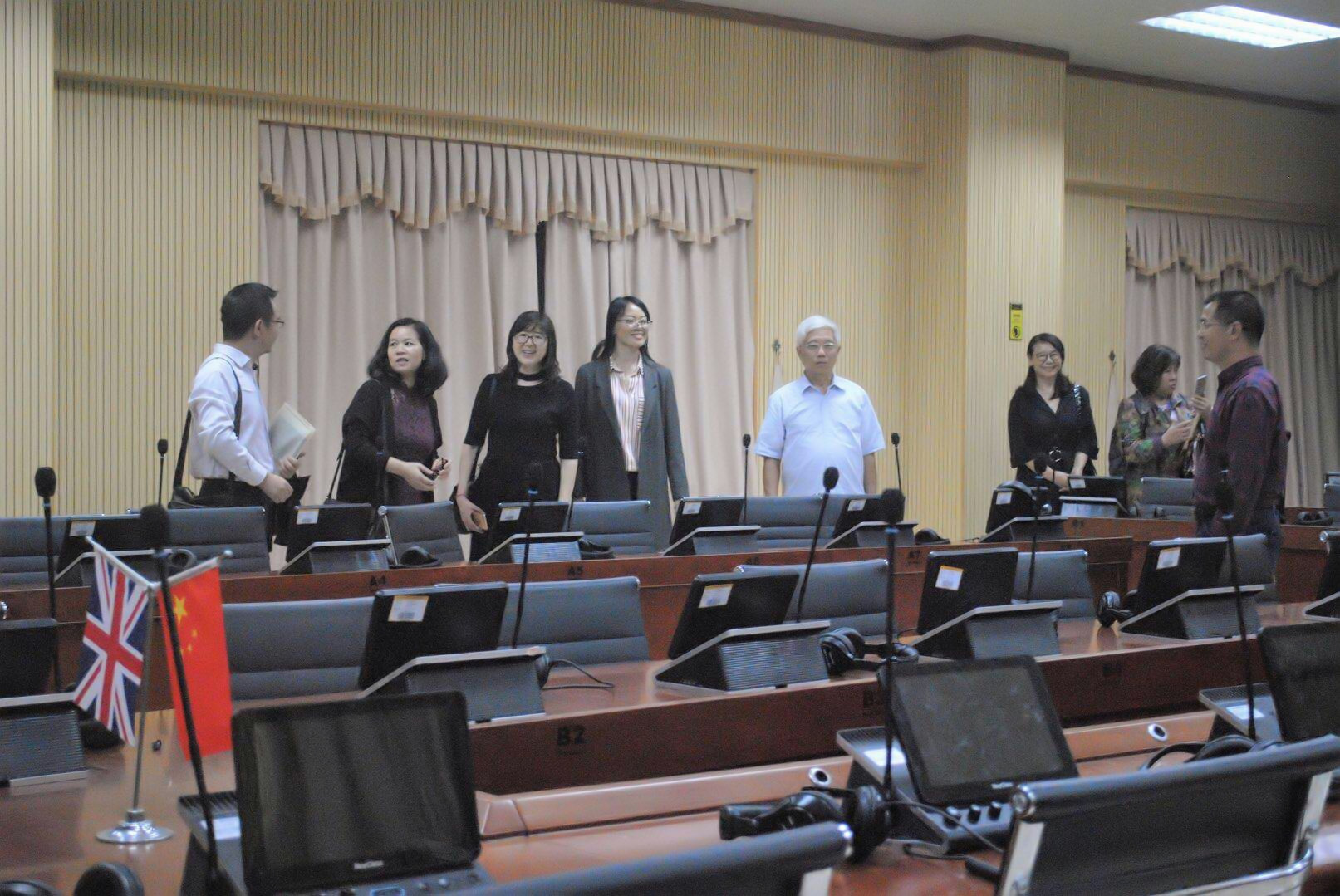 座谈会结束后,考察团在廖益清院长的陪同下参观了该校外国语学院计算机辅助翻译实验室、同声传译室及商务实训室,随后考察团一行还参观了新华学院校园。