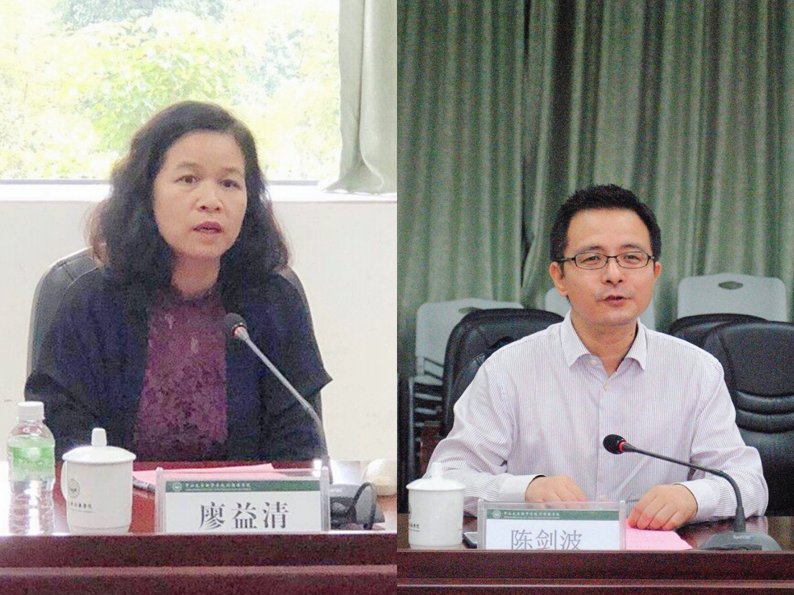 11月17日下午,受中山大学新华学院外国语学院廖益清院长邀请,我校122cc太阳集成游戏主任陈剑波、教师代表洪明教授、孙爱娜副教授及教研室主任黄光艳一行4人前往中山大学新华学院(东莞校区)外国语学院考察调研,受到该院领导的热烈欢迎。
