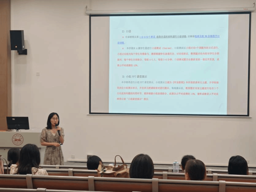 会议伊始,大一教研室主任宋微微围绕2025级大学英语教学工作展开详细说明,主要包含了教学安排、考试相关、学习平台三个方面。宋老师强调,在教学过程中,老师们应注重对学生基础能力的培养,包括四级考试的相关应试能力等,这些都需要持续的练习来提高。