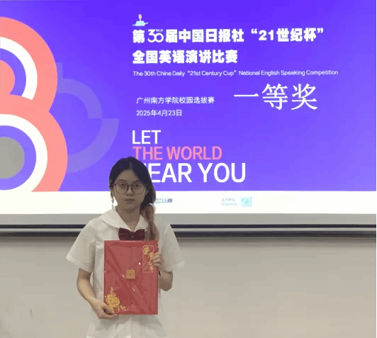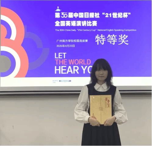 4月23日广州南方学院迎来语言与思想的双重盛宴——第30届中国日报社“21世纪杯”全国大学生英语演讲比赛校园选拔赛圆满落幕。演讲不仅是语言的艺术,更是思维的碰撞与展现。本次比赛以“Living Within and Beyond the 21st Century”为主题,旨在引导参赛选手深入思考21世纪的生存现状,同时探索面向未来的价值坐标。