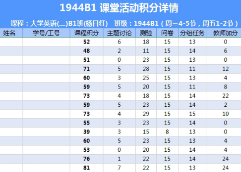 定期发布小组课程积分,提高在线课堂参与度,帮助了解班上哪些学生参与度低,为自己课后进行辅导或督促个别学生提供了线索。