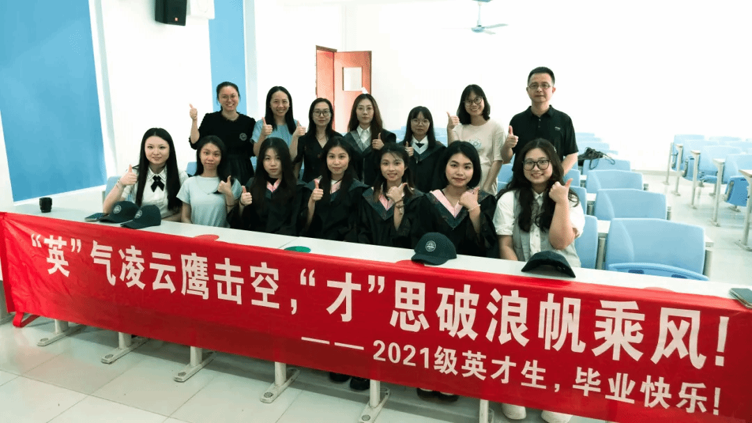 首先,班主任王劼老师为毕业生们送上毕业礼物,是大英中心定制纪念品印有ELITE班徽的鸭舌帽。班徽由21级英才班刘瑾瑄同学设计,承载着中心对优秀学子的殷切期望——挑战 (enterprise)、拼搏 (endeavor)、卓越 (excel)。
